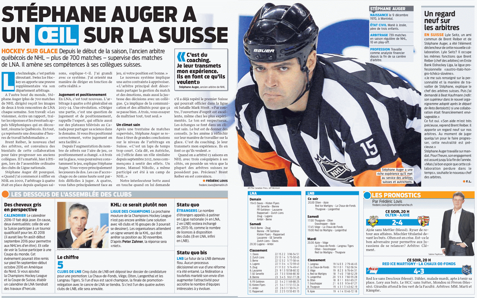 Si tu parles de cet article, sache qu'il date de novembre 2014.Taupe a écrit :Frédéric Lovis dans le Matin a écrit :Cinq clubs de LNB ont déposé leur dossier de candidature pour une promotion: La Chaux-de-Fonds, Viège, Olten, Langenthal et les Langnau Tigers